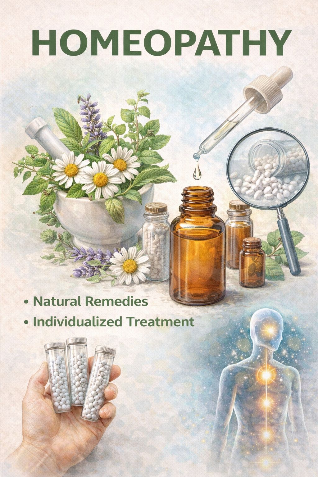 Homoeopathy is a natural, holistic system of medicine that treats the individual, not just the disease. It aims to restore balance in mind, body, and soul.